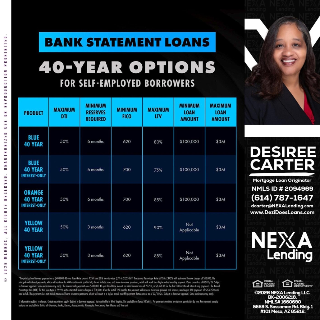 Hi, my name is Desiree Carter. I’m a Loan Officer with NEXA Lending LLC., offering personalized mortgage solutions, fast customized quotes, great rates and service with integrity.