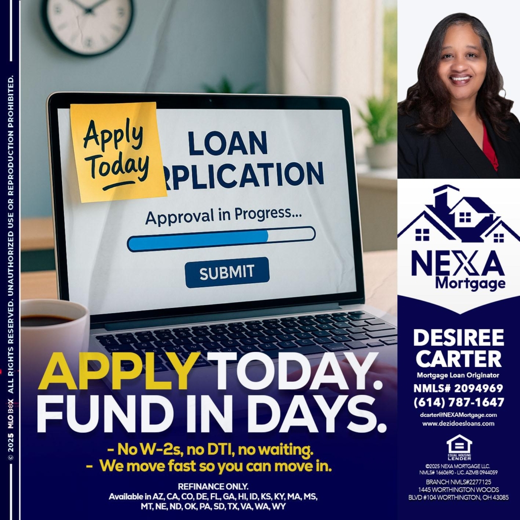 Hi, my name is Desiree Carter. I’m a Loan Officer with NEXA Mortgage LLC., offering personalized mortgage solutions, fast customized quotes, great rates and service with integrity.