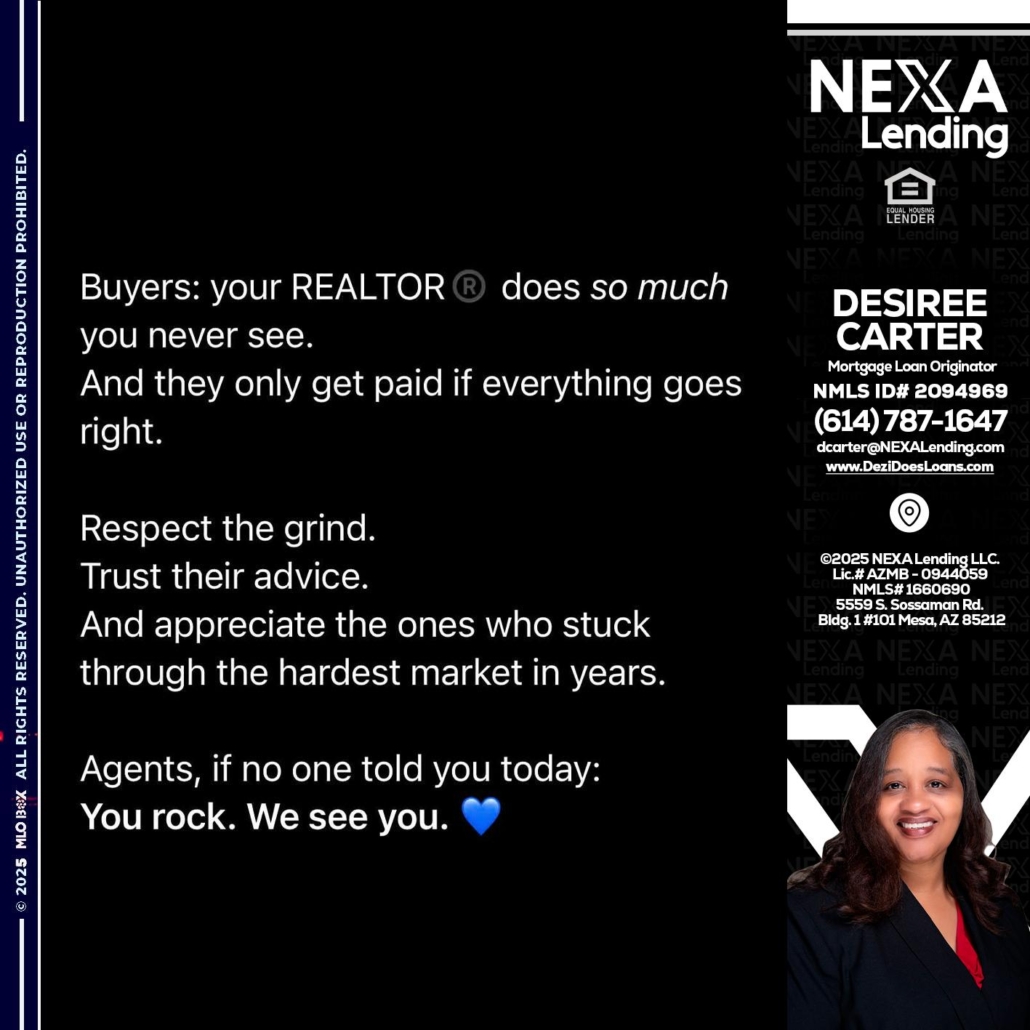 Hi, my name is Desiree Carter. I’m a Loan Officer with NEXA Mortgage LLC., offering personalized mortgage solutions, fast customized quotes, great rates and service with integrity.