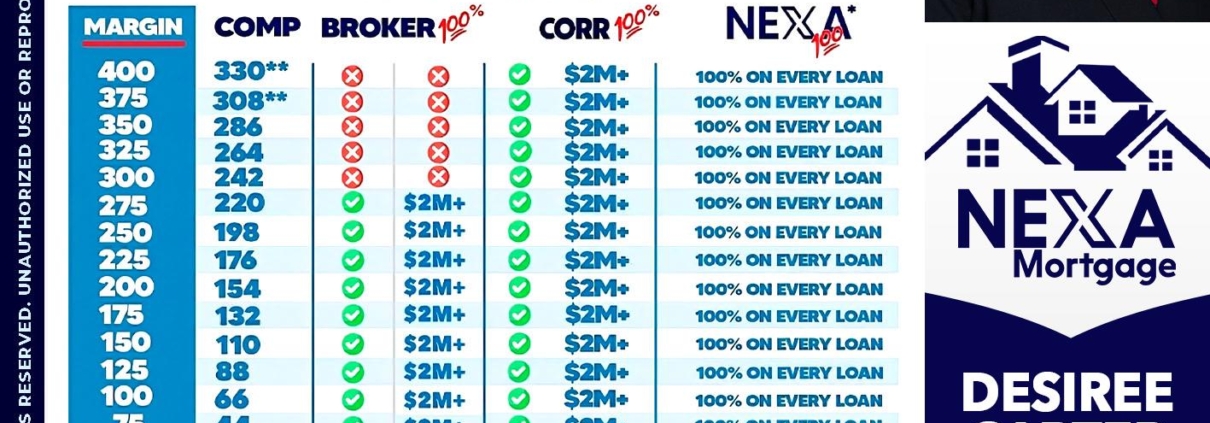 Hi, my name is Desiree Carter. I’m a Loan Officer with NEXA Mortgage LLC., offering personalized mortgage solutions, fast customized quotes, great rates and service with integrity.