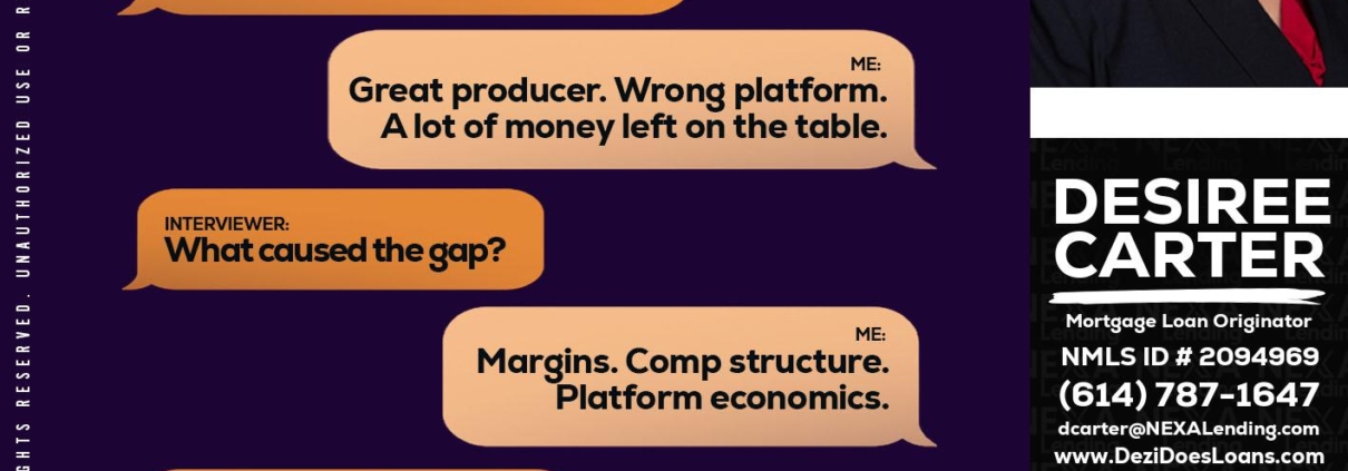 RAPID FIRE - Desiree Carter -Mortgage Loan OriginatorHi, my name is Desiree Carter. I’m a Loan Officer with NEXA Lending LLC., offering personalized mortgage solutions, fast customized quotes, great rates and service with integrity.