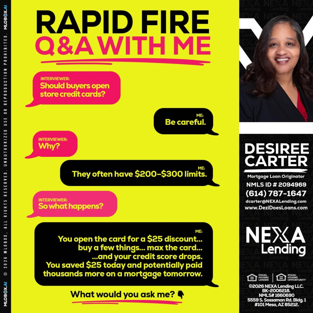 Hi, my name is Desiree Carter. I’m a Loan Officer with NEXA Lending LLC., offering personalized mortgage solutions, fast customized quotes, great rates and service with integrity.