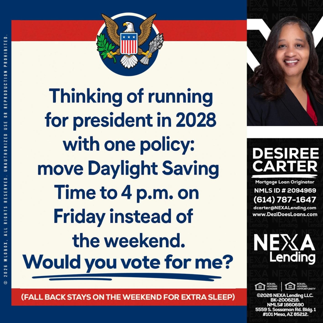 THINKING OF RUNING - Desiree Carter -Mortgage Loan OriginatorHi, my name is Desiree Carter. I’m a Loan Officer with NEXA Lending LLC., offering personalized mortgage solutions, fast customized quotes, great rates and service with integrity.