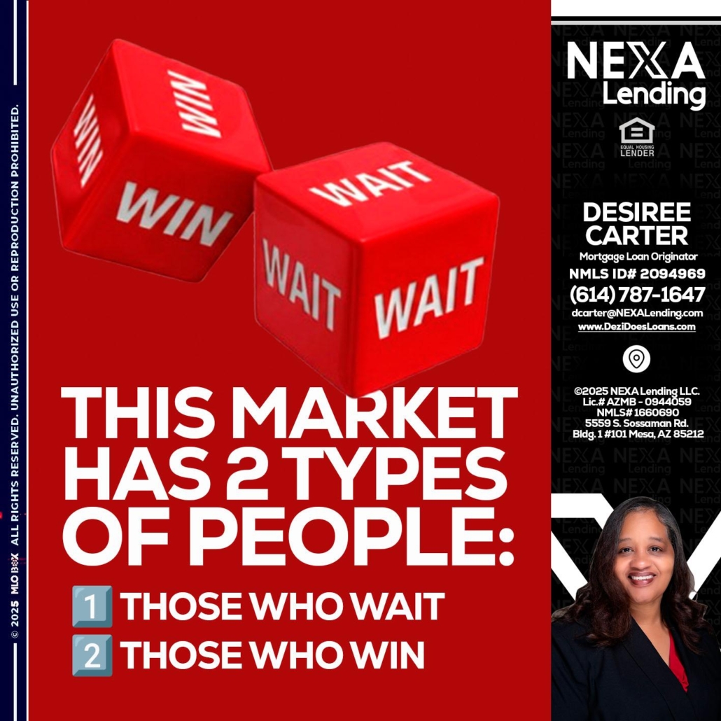 Hi, my name is Desiree Carter. I’m a Loan Officer with NEXA Lending LLC., offering personalized mortgage solutions, fast customized quotes, great rates and service with integrity.