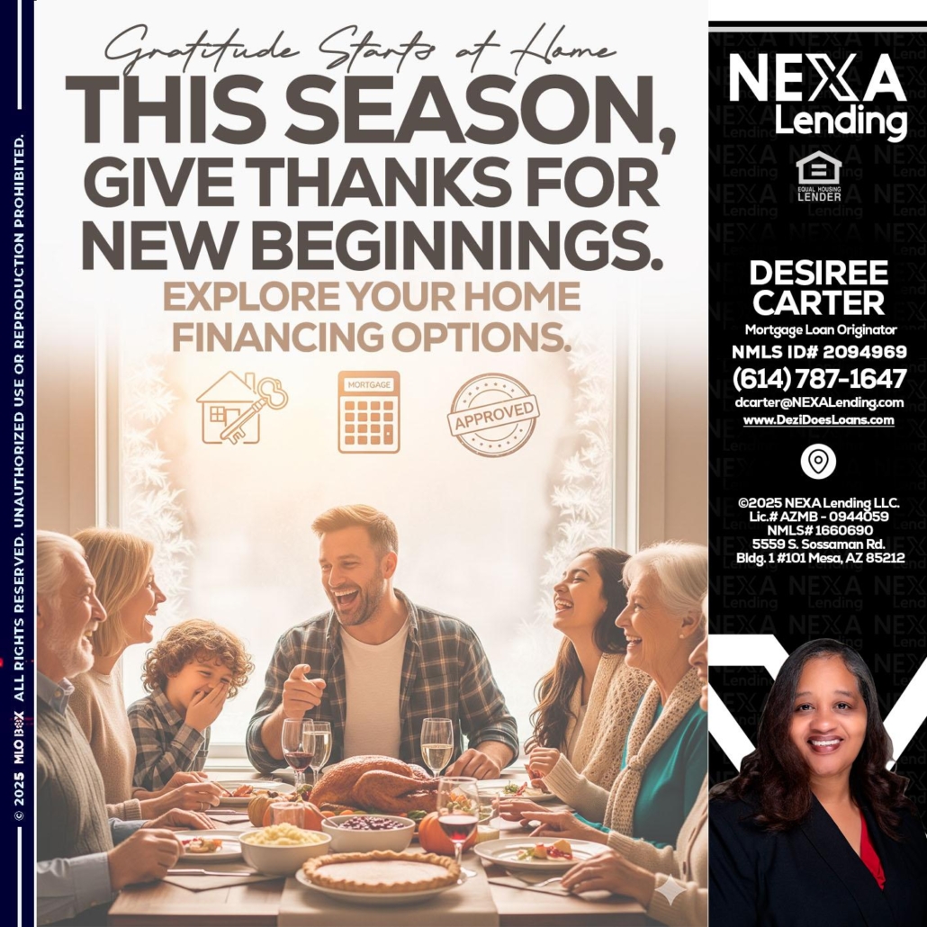 Hi, my name is Desiree Carter. I’m a Loan Officer with NEXA Mortgage LLC., offering personalized mortgage solutions, fast customized quotes, great rates and service with integrity.
