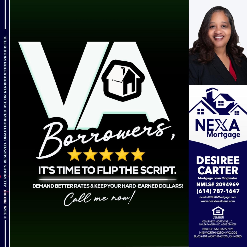 Hi, my name is Desiree Carter. I’m a Loan Officer with NEXA Mortgage LLC., offering personalized mortgage solutions, fast customized quotes, great rates and service with integrity.